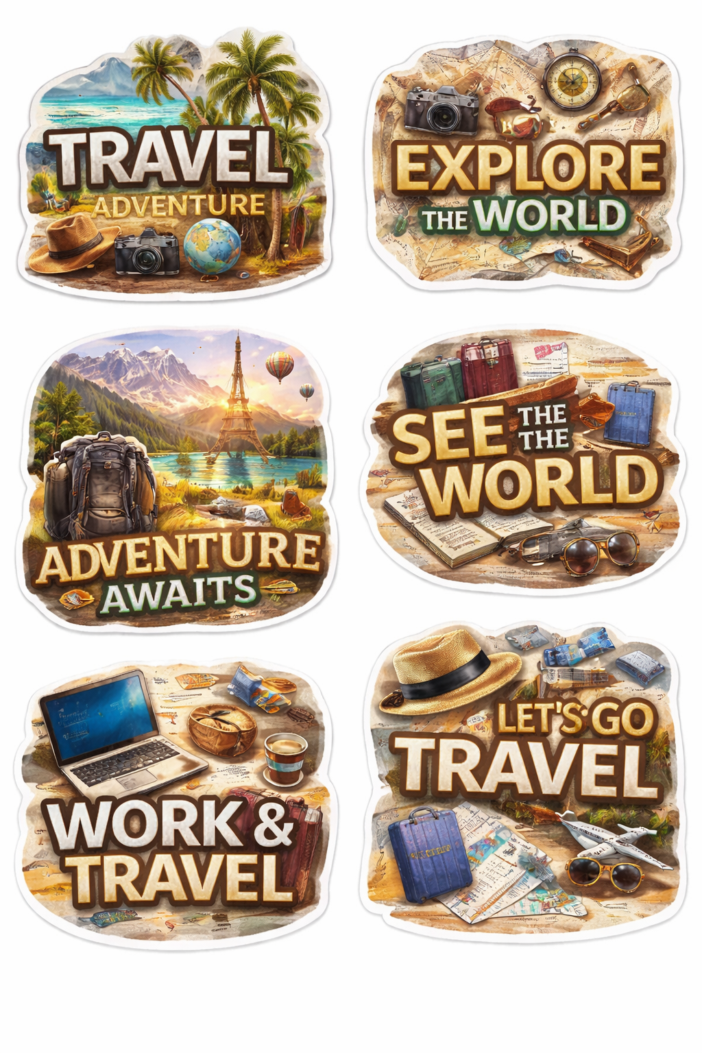 Travel Essence Stickers distill the core feeling of exploration into collectible visual designs. Each sticker reflects moments, places, and sensations associated with travel, presented in realistic detail. Ideal for creative projects, planners, and personal décor, they enhance surfaces with personality and storytelling depth. Crafted from premium materials, they maintain clarity, color integrity, and durability. The adhesive ensures secure yet clean application. Travel Essence Stickers encourage travelers to celebrate their journeys visually, blending creativity with nostalgia. They transform everyday objects into meaningful travel reflections.
